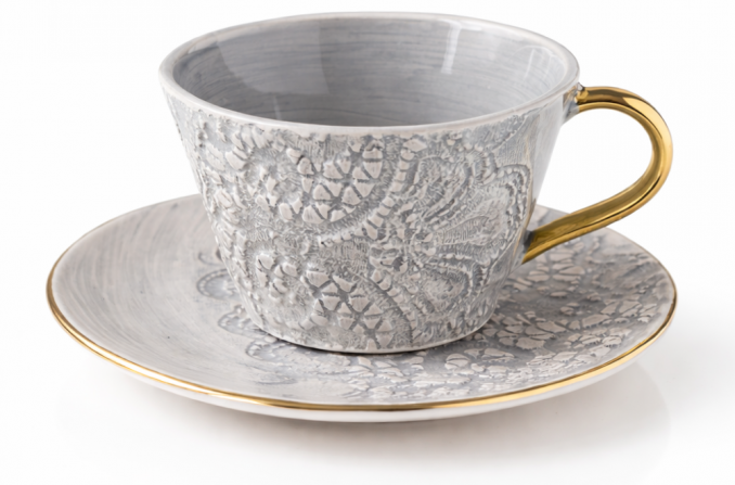 Grey tea cup&saucer