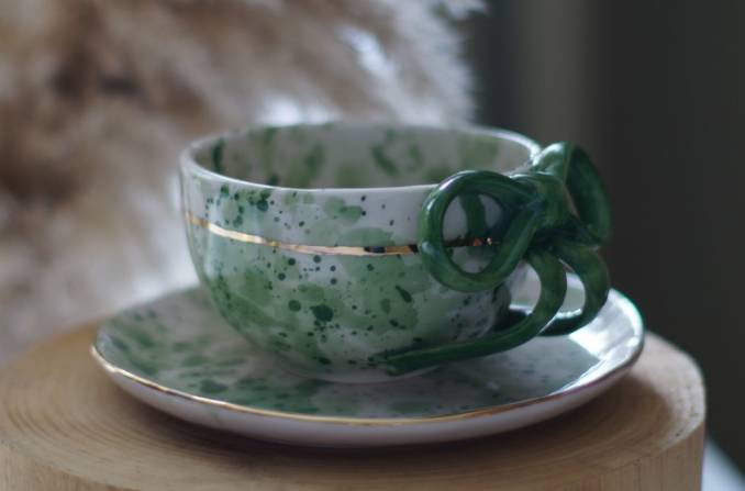 Green bow cup&saucer