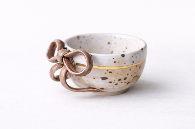 MaterialWhite clay, underglaze color, transparent glaze, 22ct gold