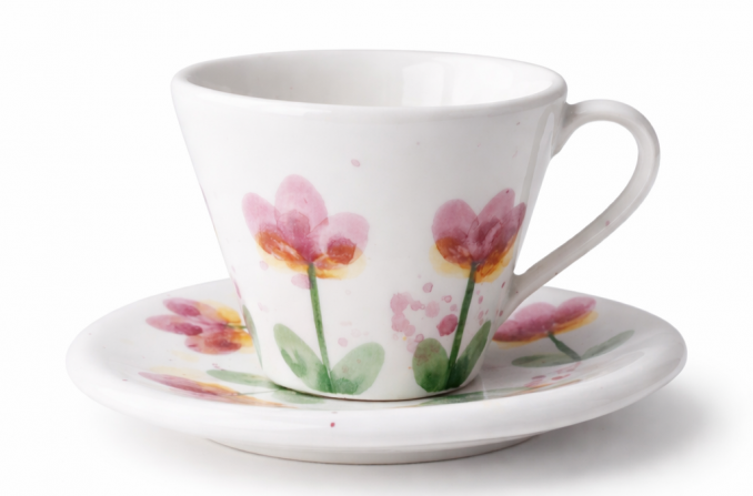 Pinki cvijet espresso šalica i tanjurić